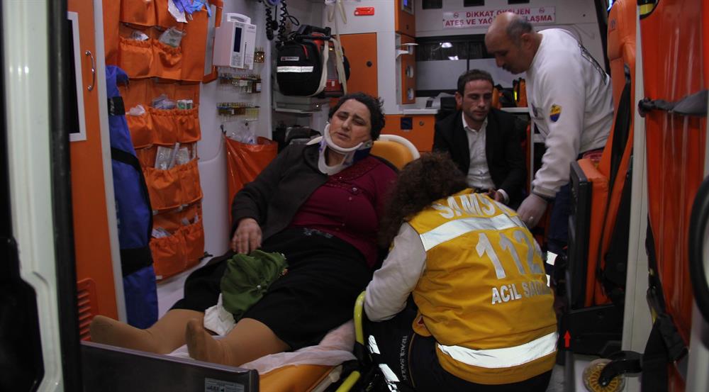 Kazada, otomobil sürücüsü Erdoğan Doğan ile yan yatan araçta bulunan Ayşe Çakır (42) ve oğlu Mehmet Ali Çakır (16) yaralandı. Yaralılar, 112 Acil ekipleri tarafından Samsun Eğitim ve Araştırma Hastanesi ile özel bir hastaneye kaldırılarak tedavi altına alındı.