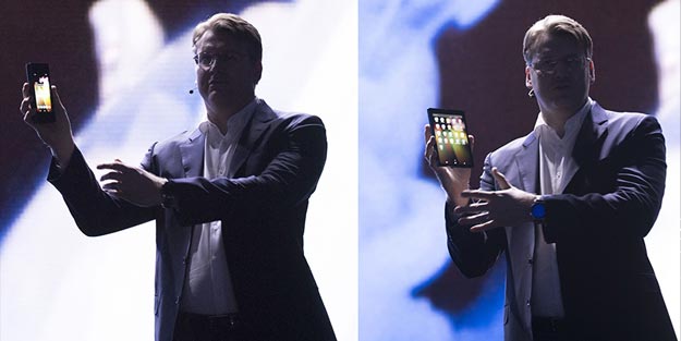 Samsung'un katlanabilme özellikli yeni telefonu, şirketin mobil telefon bölümünün başkan yardımcılarından Justin Denison tarafından ABD'nin California eyaletinin San Fransisco kentinde tanıtıldı. Samsung telefon, katlı haldeyken normal cep telefonu, açıldığında ise tablet boyutuna sahip. Telefonun diyagonal boyutu 18,5 santimetre. Tanıtımda basın mensupları ve yazılımcılara cihaza dokunmaları ve yakından bakmalarına izin verildi. Samsung, katlanabilir telefonun seri üretimine gelecek aylarda başlamayı planlıyor.