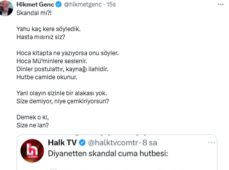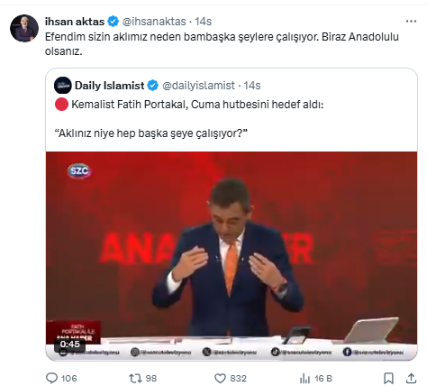 Sana ne oluyor Fatih Portakal? O hutbe Müslümanlara okunuyor sen neden rahatsız oldun?