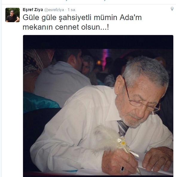 Babasının vefat haberinin ardından büyük bir üzüntü yaşayan Eşref Ziya, twitter adresinden aşağıdaki mesajı paylaştı.