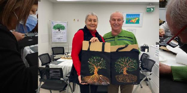 Bursa’da düzenlenen ‘Sanatın İyileştirici Gücü’ atölyesi ile kanser hastaları kendi kullanacakları çantalara hayat ağacı çizdi.