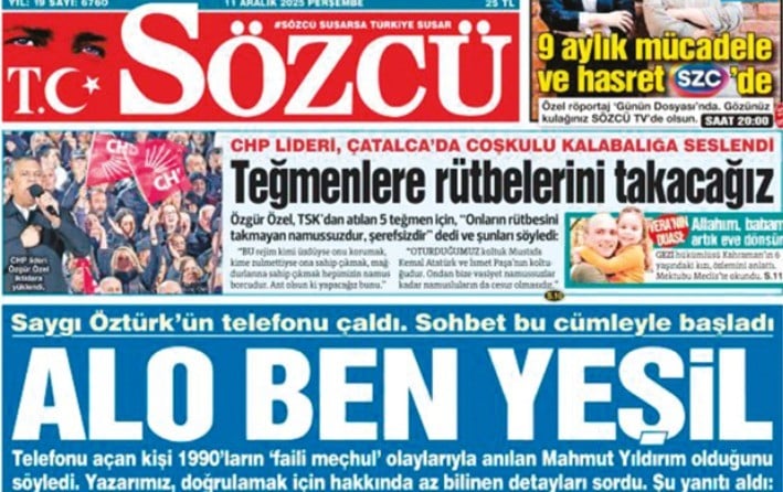 Saygı Öztürk'ü arayarak faili meçhul cinayetlerle ismi anılan 'Yeşil' olduğunu iddia eden kişiyi önce Sözcü 'Alo ben Yeşil' ifadeleriyle manşete taşıdı 'Bidon kafa' lakaplı Yılmaz Özdil, ise şimdi dalga geçti.