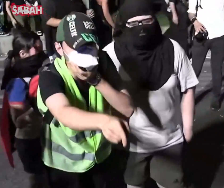 Öte yandan, maskeli bir militan İslamiyet'i hedef alan sözler sarf etti. Alçak tehditler savuran provokatör, "İslamiyet adı altında şeriat isteyenler bir bir Saraçhane'de asılacaksınız." dedi.