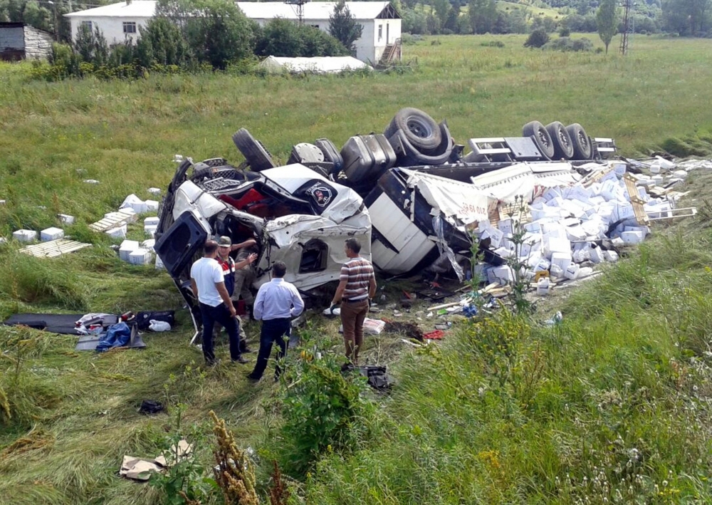 Kaza, Erzincan- Sivas karayolunun 65’inci kilometresi Refahiye ilçesi yakınlarında meydana geldi. Sivas'tan Erzincan'a gelen Veysel Pembe yönetimindeki 76 DF 756 plakalı TIR, sürücüsünün direksiyon hakimiyetini kaybetmesi sonucu şarampole yuvarlandı.
