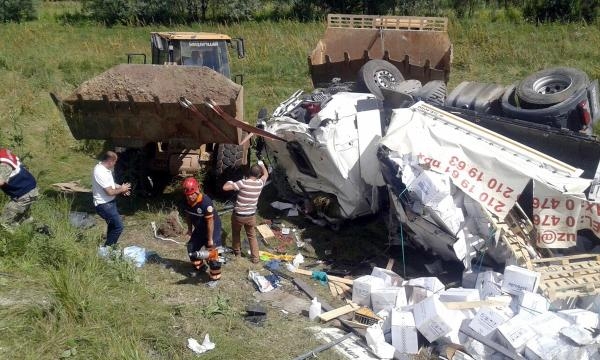 Erzincan'ın Refahiye İlçesi yakınlarında, devrilen TIR'ın altında kalan sürücü 49 yaşındaki Veysel Pembe yaşamını yitirdi.