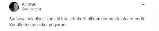 Ne demiştim… "Ama merak etmeyin. Buna müsaade etmeyecek sorumlu yiğit insanlar var. Yarını bekleyin İnşallah…" O yiğit insan müdahale etti. Konser iptal… O yiğide teşekkür ediyoruz…