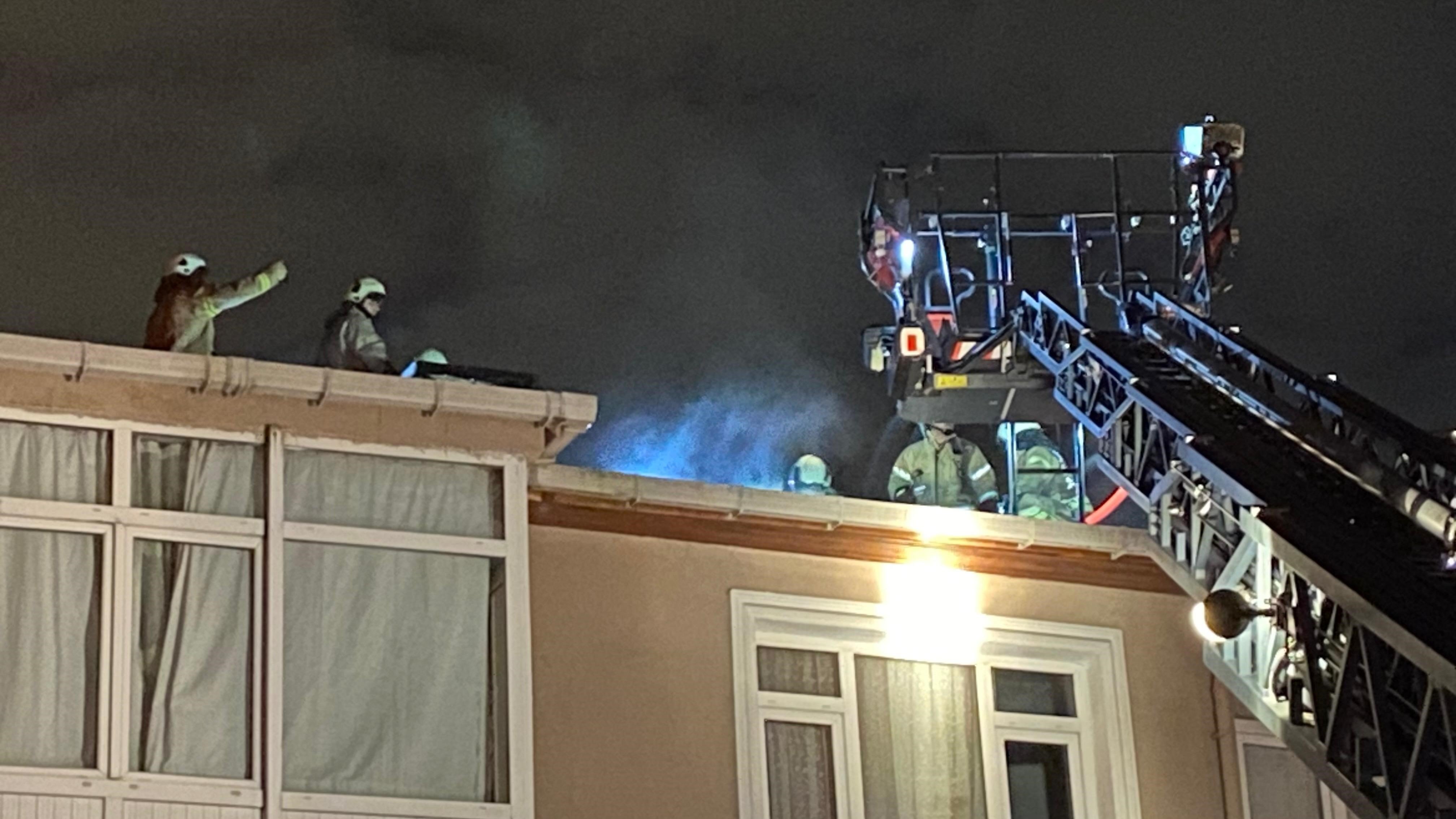 Sarıyer’de 4 katlı binanın çatısında çıkan yangın korkuttu