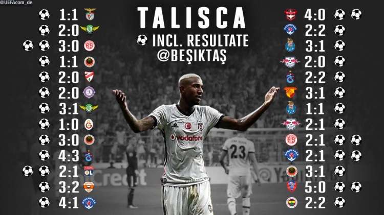 Beşiktaş'ın son iki sezon elde ettiği başarılarda büyük pay sahibi olan Anderson Talisca'nın performansı UEFA'nın da dikkatini çekti.