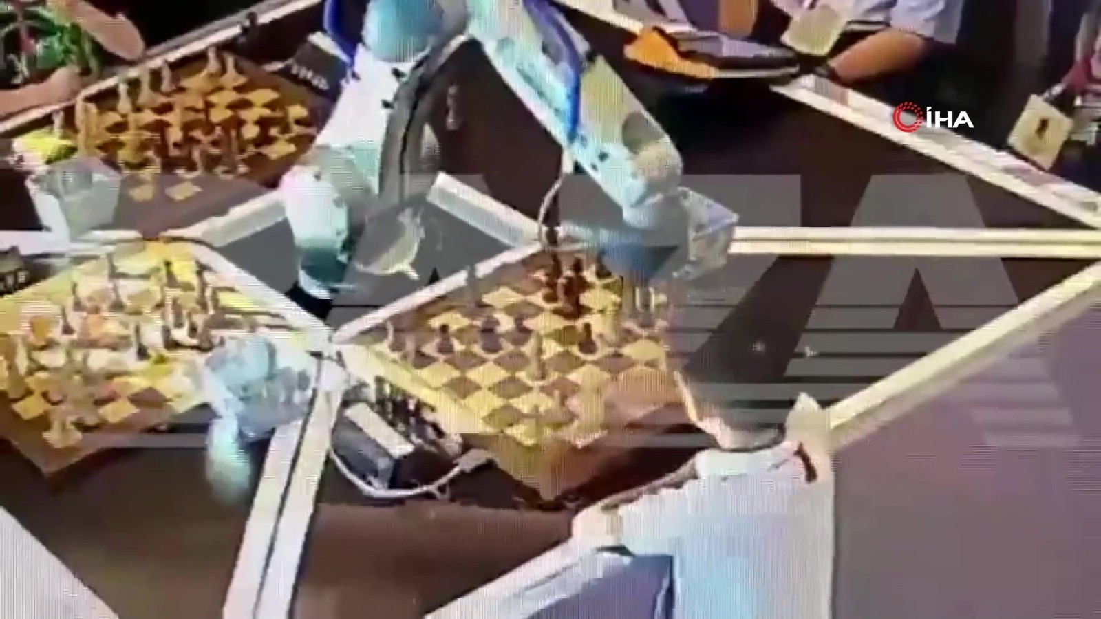Rusya’nın başkenti Moskova’da düzenlenen bir satranç turnuvasında ilginç bir olay yaşandı. Satranç oynaması için geliştirilen robotik kol hamle yaptığı sırada beklemeyip oynamaya devam eden çocuğun parmağını ezdi. Parmağı bir süre robotun altında kalan 7 yaşındaki çocuk, izleyicilerin ve görevlilerin yardımıyla kurtarıldı. Çocuğun parmağının kırıldığı ve alçıya alındıktan sonra turnuvayı tamamladığı öğrenildi.