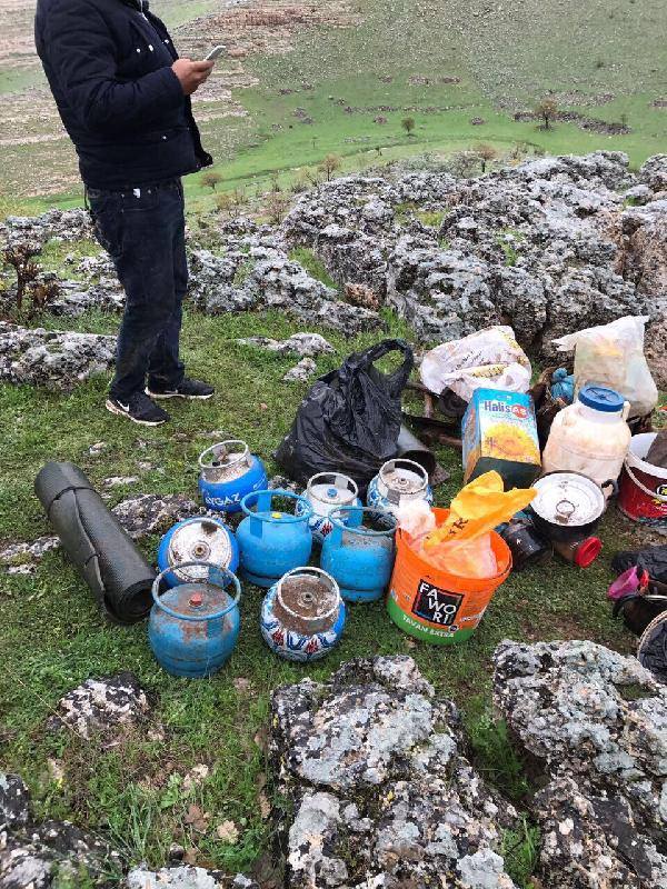 İçerisinde tuvalet, mutfak ve yatak bölmelerinin yer aldığı sığınakta çok sayıda yaşam malzemeleri de bulundu.