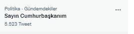 Cumhurbaşkanı Recep Tayyip Erdoğan’ın COVID-19 testinin sonucu pozitif çıkmasıyla sosyal medyada “Sayın Cumhurbaşkanım” hashtagı birinci sırada yerini aldı.