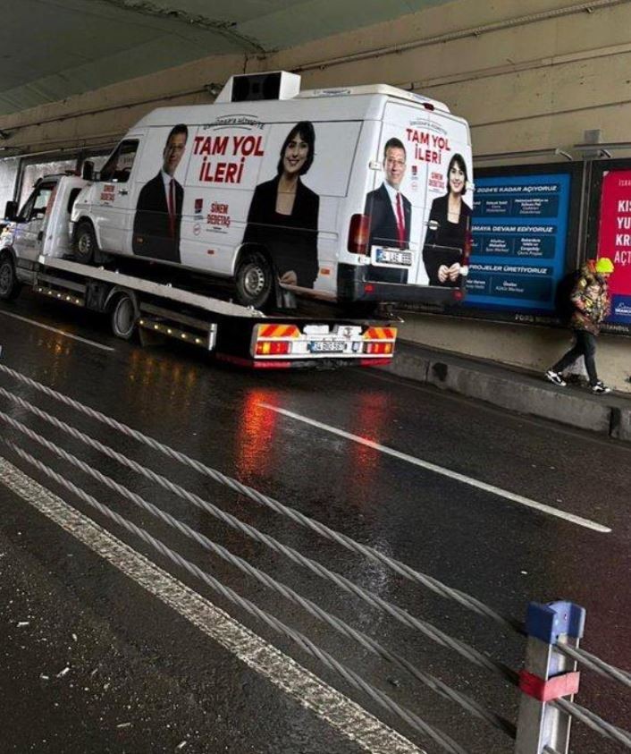 Tüm bunların yanı sıra seçim çalışmasında da büyük bir beceriksizlik gösteren İmamoğlu ve ekibinin seçim aracı da yolda kaldı.