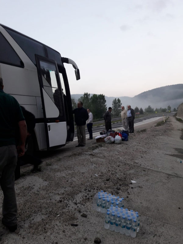 Çankırı’dan oy kullanmak için İstanbul yoluna koyulan AK Parti sevdalılarının otobüsleri arıza yaptı. 5 saat Çankırı - Çerkeş yolunda mahsur kalan vatandaşlar, geri dönmeyi düşünmeden arızanın geçmesini bekledi. “Bizim bu vatana aşkımız var” diyen 50 yaşın üstündeki erkek ve kadın AK Partili vatandaşlar, “Hiçbir engel bizi davamızdan döndüremez” diye konuştular.