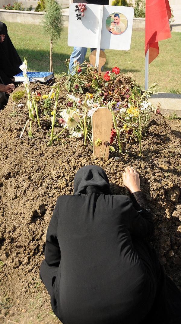 Geçtiğimiz 8 Eylül tarihinde Iğdır'ın Dilucu Sınır Kapısı'nda görevli polis memurlarını götüren servis minibüsü ile koruma görevi yapan otomobilin, Aralık İlçesi'ne bağlı Hasanhan Köyü yakınlarından geçişi sırasında PKKlı teröristlerin patlattığı 1 ton bomba sonucu şehit düşen 13 polisten biri olan Burak Zor'un kabri başında ailesi dualar okudu.