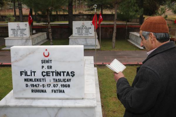 Şehit kardeşinin mezarını yıllardır görmek istediği halde bugüne kadar bulamadıklarını belirten Ali Çetintaş ise duygusal anlar yaşadıklarını söyledi. Kardeşinin adresini bulup, şimdi misafir olarak yanına geldiklerini belirten Çetintaş, "Kardeşimin şehit olduğunda haber aldık, ancak ben o tarihçe küçüktüm, cenazeyi Ağrı'ya getirmediler, buraya defnettiler. Uzun yıllar araştırmadık, sormadık, bugüne kaldı. Yerini yeni öğrenip geldik" diye konuştu.