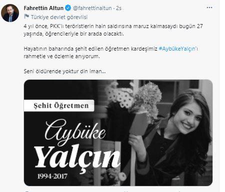Batman'ın Kozluk ilçesinde 9 Haziran 2017'de Belediye Başkanı’nın aracına yönelik PKK'lı teröristlerce düzenlenen saldırıda, karne dağıtım töreninin ardından evine giden müzik öğretmeni Şenay Aybüke Yalçın ağır yaralanmıştı. Genç öğretmen kaldırıldığı Kozluk Devlet Hastanesinde şehit olmuştu. Şehit öğretmen Aybüke Yalçın vefatının 4'üncü yılında siyasetçiler tarafından unutulmadı.