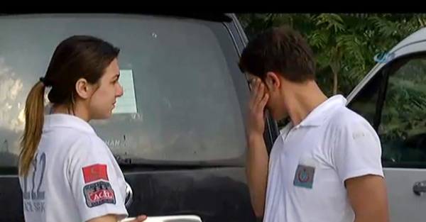 Olay yerine gelen şehit polislerin yakınlarının gözyaşları sağlık görevlilerini de ağlattı.