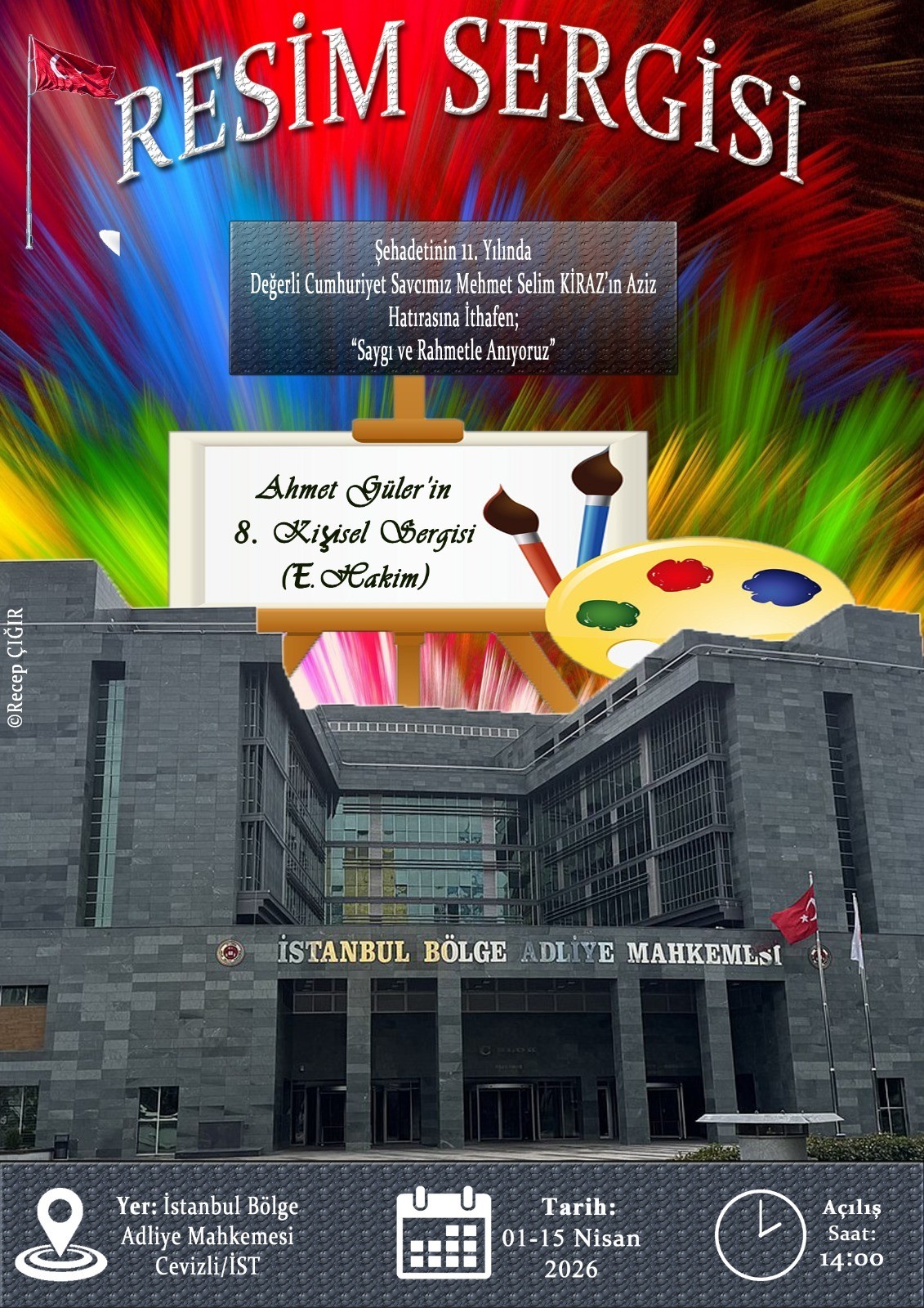 Daha önceki 7 sergisini de Şehit Savcı Mehmet Selim Kiraz’ın aziz anısına atfeden İstanbul 4. Vergi Mahkemesi eski Başkanı emekli hakim Ahmet Güler’in seçkin eserlerinden oluşan 8. kişisel resim sergisi 15 Nisan’a kadar İstanbul Cevizli’deki İstanbul Bölge İdare Mahkemesi zemin katta ziyaretçilerini ağırlayacak.