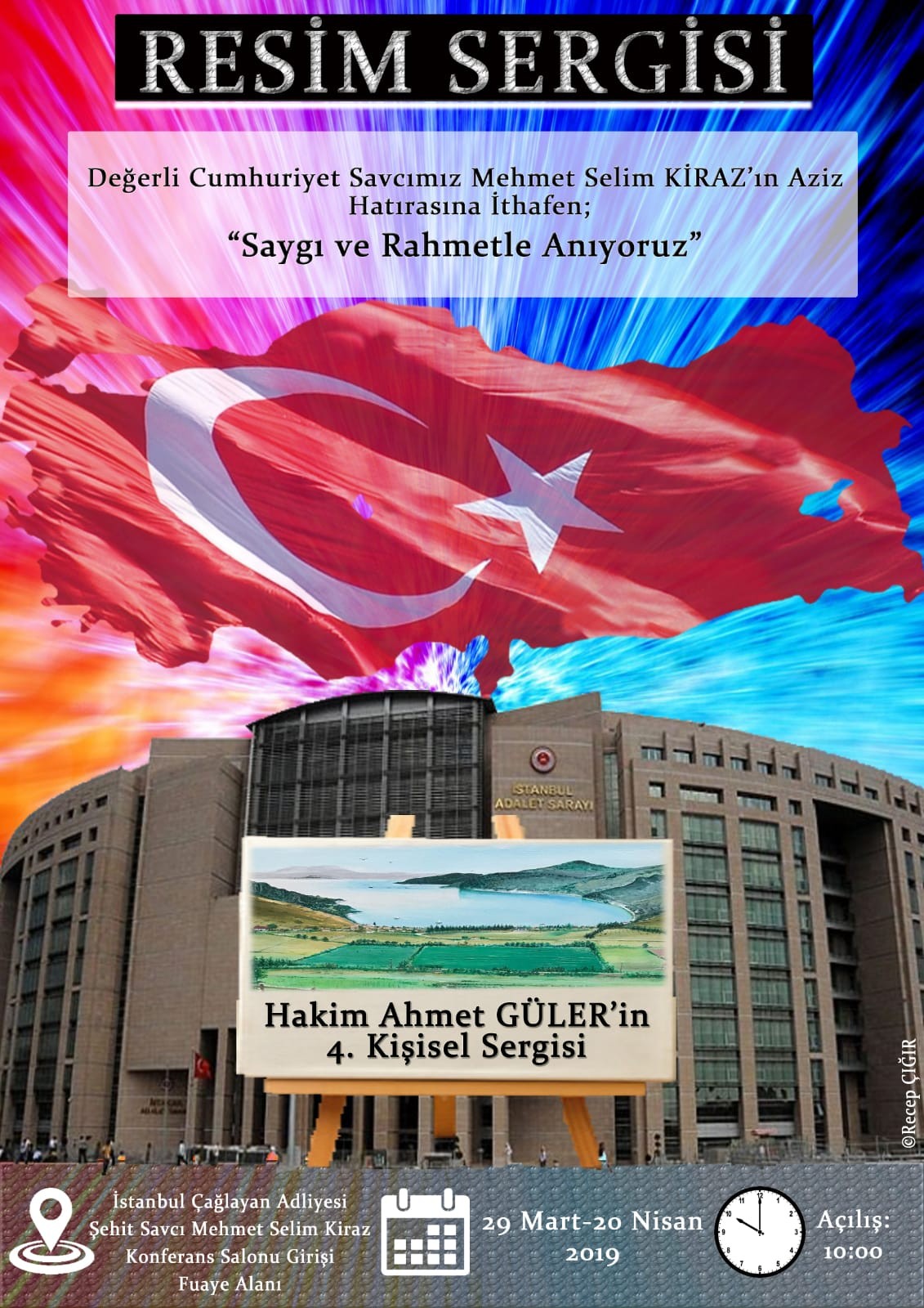 Milli iradeye karşı ilk darbe girişimi olan Gezi Parkı eylemlerinde polise taş atarken hayatını kaybeden Berkin Elvan dosyasına bakan ve DHKP-C’li teröristlerce şehit edilen İstanbul Cumhuriyet Savcısı Mehmet Selim Kiraz anısına 29 Mart’ta açılan sergi 20 Nisan’a kadar sürecek. Hakim Ahmet Güler’in 4. Kişisel sergisi niteliği de taşıyan etkinlik İstanbul Çağlayan Adliyesi Şehit Savcı Mehmet Selim Kiraz Konferans Salonu’nda ziyaretçilerini bekliyor. Yurdu yaşatmak için kahramanca can veren ve şahadet şerbetini yudumlayan Kiraz, 80 milyon vatandaşımızın kalbine gömüldü.