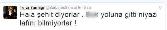 Eşcinsel Sapkın olarak bilinen Barbaros Şansal hakkında şehitlerle ilgili hakaret tweet'lerinden dolayı suç duyurusunda bulunuldu. Dilekçede, tutuklanması talep edildi.