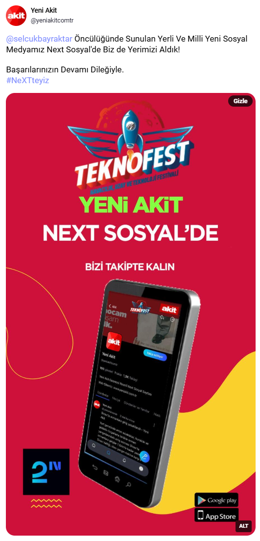Selçuk Bayraktar öncülüğünde geliştirilen yerli sosyal medya platformu Next Sosyal yayında! Biz de NeXT'teyiz