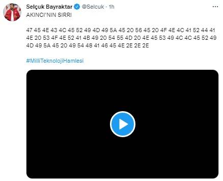 Selçuk Bayraktar sosyal medya hesabından, "Akıncı'nın sırrı" diyerek Başkan Recep Tayyip Erdoğan'ın mesajının yer aldığı bir video yayınladı.