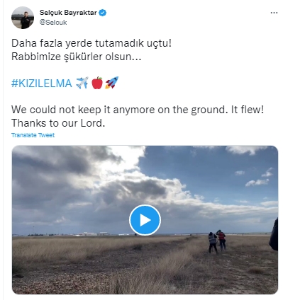 Tarihi anları sosyal medya hesabından paylaşan Baykar Teknik Müdürü Selçuk Bayraktar, "Daha fazla yerde tutamadık uçtu. Rabbimize şükürler olsun..." açıklamasında bulundu.