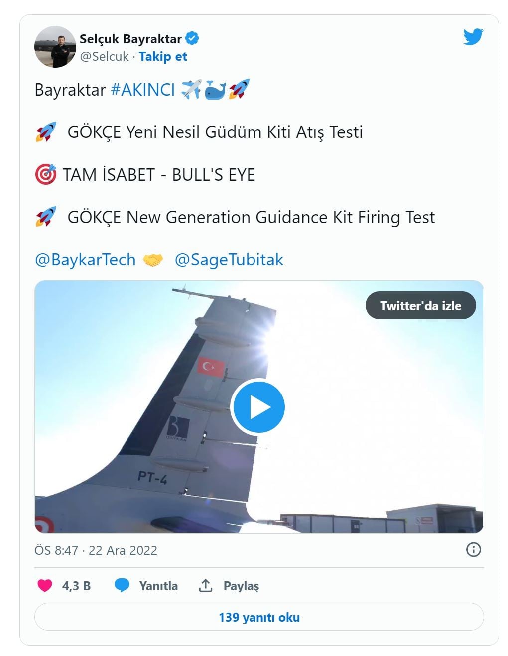 Selçuk Bayraktar'dan AKINCI paylaşımı! Hedefi tam isabet vurdu