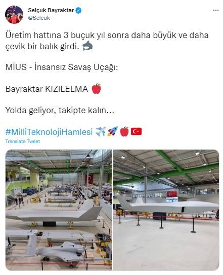 Bayraktar paylaşımında MİUS'un üretim hattındaki görüntülerine de yer verdi.