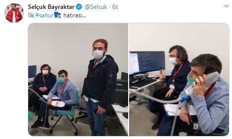 Öyle ki sahur saatlerinde bile yerli solunum cihazını üreten ekip çalışmalarına devam ediyor. Selçuk Bayraktar da yerli solunum cihazı üzerinde çalışmalar sürerken ilk sahur hatırasını sosyal medya hesabından paylaştı.