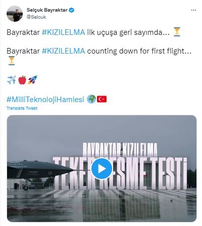 Bayraktar paylaşımında, "Bayraktar KIZILELMA ilk uçuşa geri sayımda" ifadelerini kullandı.
