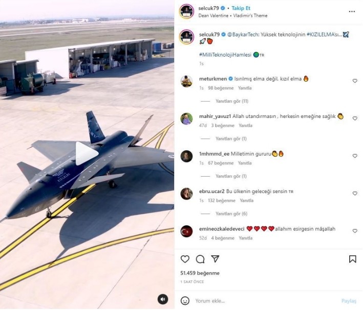 Baykar Teknoloji Yönetim Kurulu Başkanı Selçuk Bayraktar, sosyal medya hesabı İnstagram'dan Bayraktar Kızılelma hakkında dikkat çeken bir video paylaştı. Selçuk Bayraktar paylaşımından, "Yüksek teknolojinin KIZILELMA'sı..." ifadelerini kullandı.