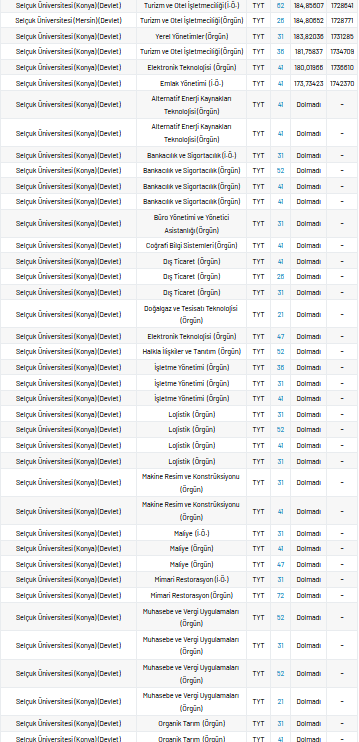 Selçuk Üniversitesi 2 yıllık taban puanları 2021 yüzdelik dilimleri ve kontenjan sayıları kaçtır?