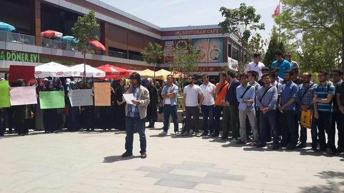 Konya Selçuk Üniversitesi'nde okuyan Müslüman gençler, Gökkuşağı AVM önünde saat 12:30’da bir araya geldi ve İhvan mensuplarına Sisi cuntası tarafından verilen idam kararlarını protesto etti.