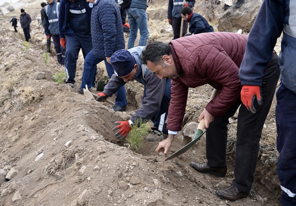 Çevre ve Sıfır Atık Platformunun organizasyonunda önemli bir etkinliğe imza attıklarını belirten Selçuklu Belediye Başkanı Ahmet Pekyatırmacı; “Bugün Selçuklu ilçemizde Çevre ve Sıfır Atık Platformunun toplam 2 bin 600 gönüllüsü var artık. Bütün gönüllülerimizle birlikte fidan dikim sahamızda Çevre ve Sıfır Atık Platformunun gönüllü ormanında fidan dikim faaliyetlerimizi yerine getiriyoruz. Üç bin tane fidanı toprakla buluşturuyoruz. İlçemizde her gün ağaçlandırma çalışmalarını yürütüyoruz. En önemli hususlardan bir tanesi çevre, iklim değişikliği ile birlikte çevrenin ve doğanın ne kadar önemli olduğunu bir kez daha anlamış olduk. Bu yüzden burada yeni belirlediğimiz alanda platform üyelerimiz ile birlikte bu faaliyetlerimizi başlatmış olduk. İnşallah bundan sonraki süreçte de Çevre ve Sıfır Atık Platformuna üye olan her gönüllümüz için bir fidanı bu ormanda toprakla buluşturmuş olacağız. Hedefimiz Konya’mızda özellikle Selçuklu ilçemizin hemen batı kısmında yer alan Takkeli Dağ ve civarındaki alanda bütün alanlarımızı ağaçlandırmak ve Konya’mızdan bakıldığında yeşil dışında bir rengin görülmemesini istiyoruz. Bu noktada da çalışmalarımız devam ediyor” diye konuştu.