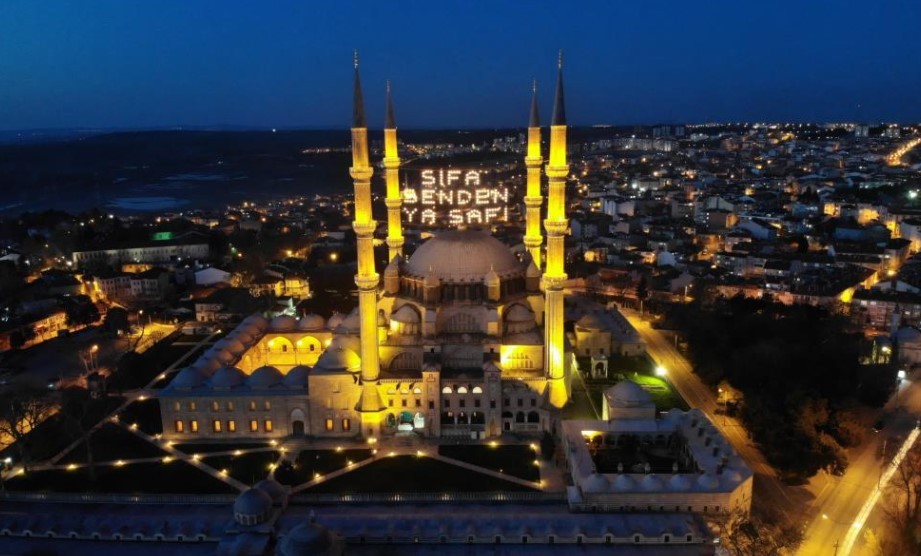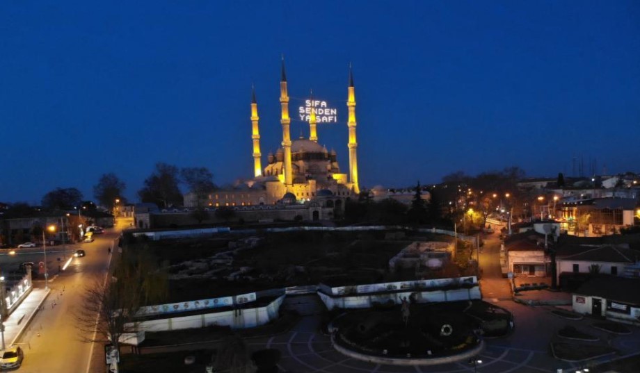 Diyanet İşleri Başkanlığı ve Vakıflar Genel Müdürlüğü tarafından bu yıl belirlenen tema kapsamında, yaklaşık 30 metre uzunluğundaki ‘Şifa senden ya şafi’ yazılı mahya, dünya mimarlık tarihinin başyapıtlarından Selimiye Camii’ne asıldı.