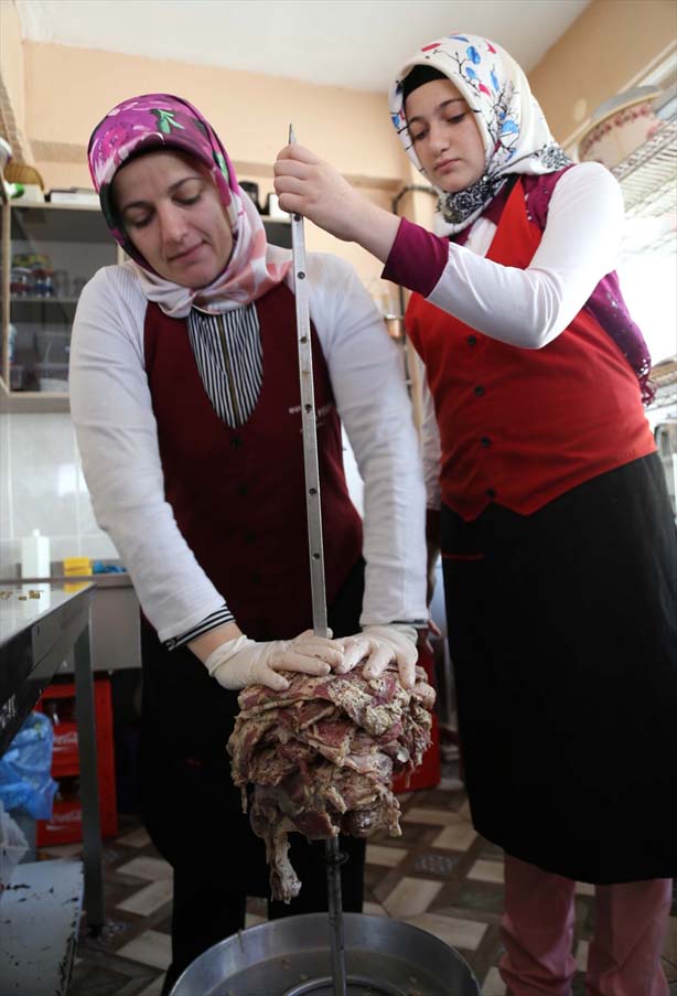 Müşterilerine istekleri doğrultusunda cağ kebap, mantı veya başka yiyecekler de ikram edilen restoranın işletmecisi Aslan, böylece erkek işi olarak kabul edilen sektörde hem müşterilerine hizmet ediyor hem de ailesinin geçimine sağlıyor.