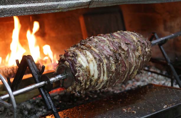 Bir süre sonra Aslan'ın yaktığı ocakta pişirilen cağ kebabı, öğle vakitlerinde restorana gelmeye başlayan müşterilere ikram ediliyor.