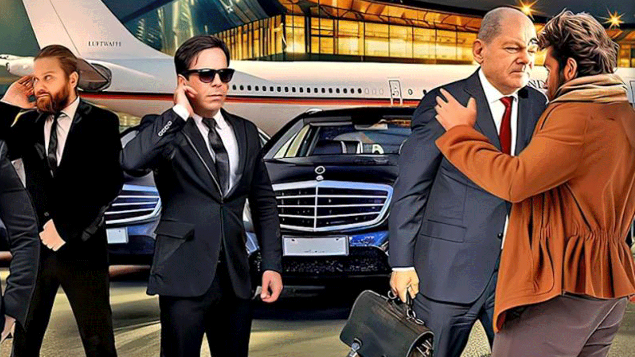 Sanık Paschalis D, Mayıs 2023'te yolda Avrupa Merkez Bankasının etkinliğinden dönen Başbakan Scholz'un konvoyuna dahil olmuş, aracıyla Frankfurt Havalimanının apronuna girerek Başbakan'a uçuş öncesi sarılmıştı.