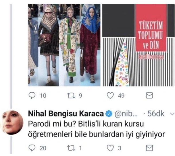 Nihal Bengisu Karaca, sosyal medya hesabından mankenlerin giydiği kıyafetleri eleştirirken Bitlisli Kuran Kursu öğretmenlerini hedefine aldı.