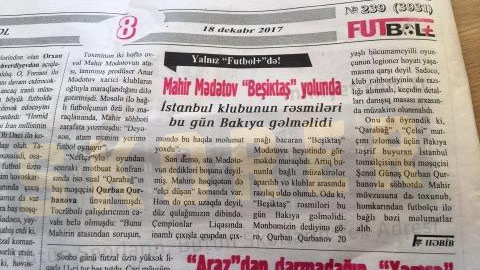 Azerbaycan'da yayınlanan Futbol+ gazetesindeki habere göre Beşiktaş, Qarabağ takımının genç yıldızı Mahir Madatov'u kadrosuna katıyor.