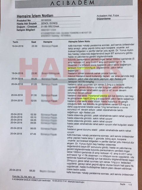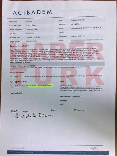 Habertürk'ün yayınladığı raporlarda yer alan ibareler, tecrübeli teknik adamın yaşadıklarını doğruladı. Raporlarda Şenol Güneş’in kafasının saçlı derisinde yaralanmaya rastlandığı yazarken Güneş’in sahayı terk etmesinin en büyük nedenlerden biri olarak da tansiyonunun aniden yükselmesi de yer aldı. İlk olarak 19’a çıkan Güneş’in tansiyonunun gece boyunca 17.4’te olduğu raporlarda görülürken, hastanın kendisini huzursuz ve sıkıntılı hissettiği, bu nedenle Güneş’e tansiyon düşürücü ve rahatlatıcı ilaçlar verilerek takip edildiği yazıldı.