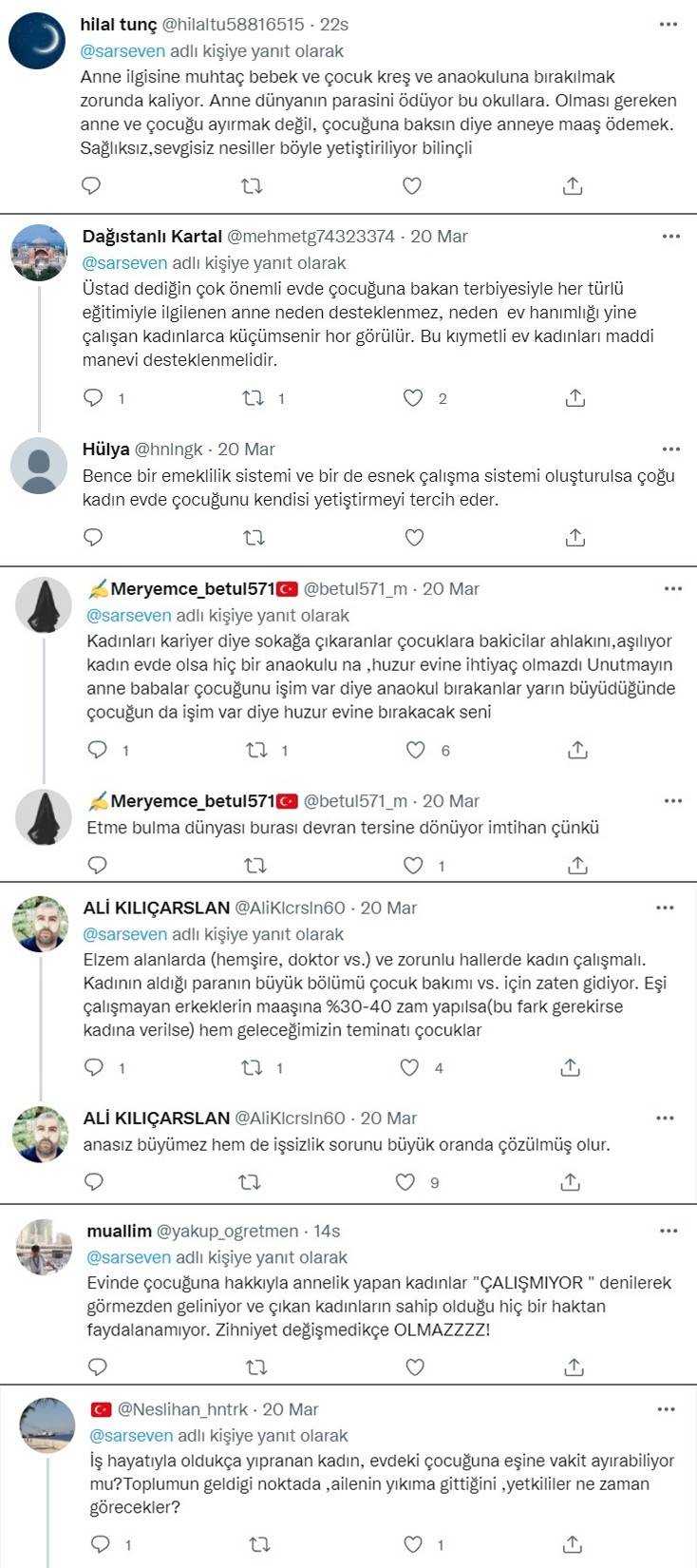 Serdar Arseven'in çağrısı vatandaşlardan da destek aldı. Vatandaşlar, ailenin ve gelecek nesillerin selameti annelerin çocuklarıyla bizzat ilgilenmesi gerektini belirtti. Bazı vatandaşlar, annelere maaş bağlanması çağrısında da bulundu.