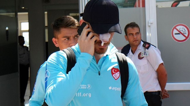 A Milli Takımımızın Ukrayna ile oynadığı karşılaşmada yüzüne aldığı darbe sonucu burnunda kırık meydana gelen Serdar Aziz kadrodan çıkarıldı.