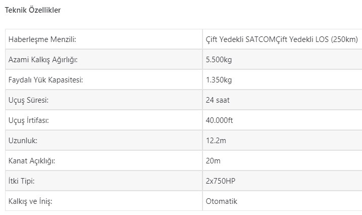 Kendine özgü bükümlü kanat yapısıyla 20 metrelik bir kanat açıklığına ve çok sayıda mühimmat istasyonuna sahip olacak AKINCI; 40.000ft irtifada 24 saat boyunca havada kalabilecek ve 1.350 kilogram faydalı yük taşıyabilecektir. Taşıdığı elektronik destek podu, uydu haberleşme sistemleri, hava-hava radarları, engel tespit radarı, sentetik açıklıklı radar gibi çok daha gelişmiş faydalı yüklerle görev yapacak sistem, hava-yer ve hava-hava angajmanı gerçekleştirebilecektir.