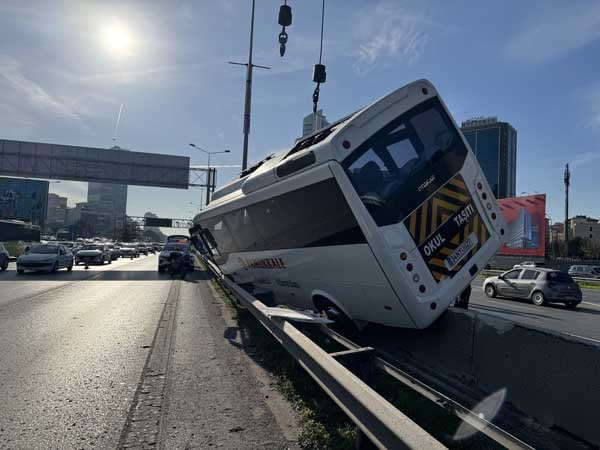 İstanbul’un Kadıköy ilçesinde bir servis minibüsü, başka bir araçla çarpıştı ve bariyerlere çıktı. Kaza nedeniyle trafik yoğunluğu oluştu.