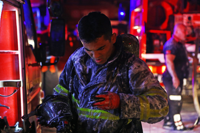 Olay yerine gelen itfaiye ekipleri, yangına su ve köpükle müdahale etti. Yoğun duman nedeniyle oksijen maskeleriyle müdahale eden itfaiye ekipleri, yaklaşık 1 saat süren çalışmanın ardından yangını kontrol altına aldı.