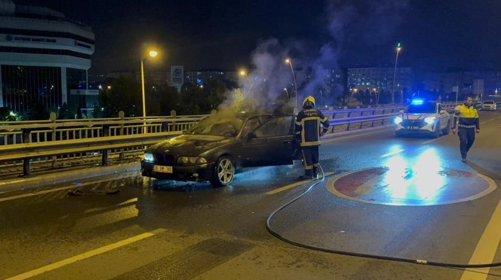 Edinilen bilgiye göre, ilçeye bağlı Mevlana Mahallesi Mustafa Kemal Paşa Bulvarı üzerinde bulunan üst geçitte seyreden E.Ö. yönetimindeki 38 BM 140 plakalı otomobilin motor kısmından dumanlar çıkmaya başladı. E.Ö. otomobili durdururken, dumanlar yerini alevlere bıraktı.