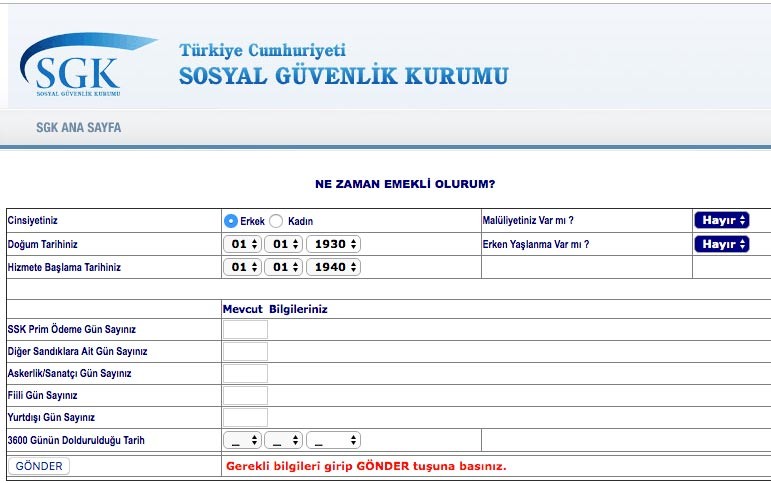 Ne zaman emekli olurum öğrenmek için tıklayınız