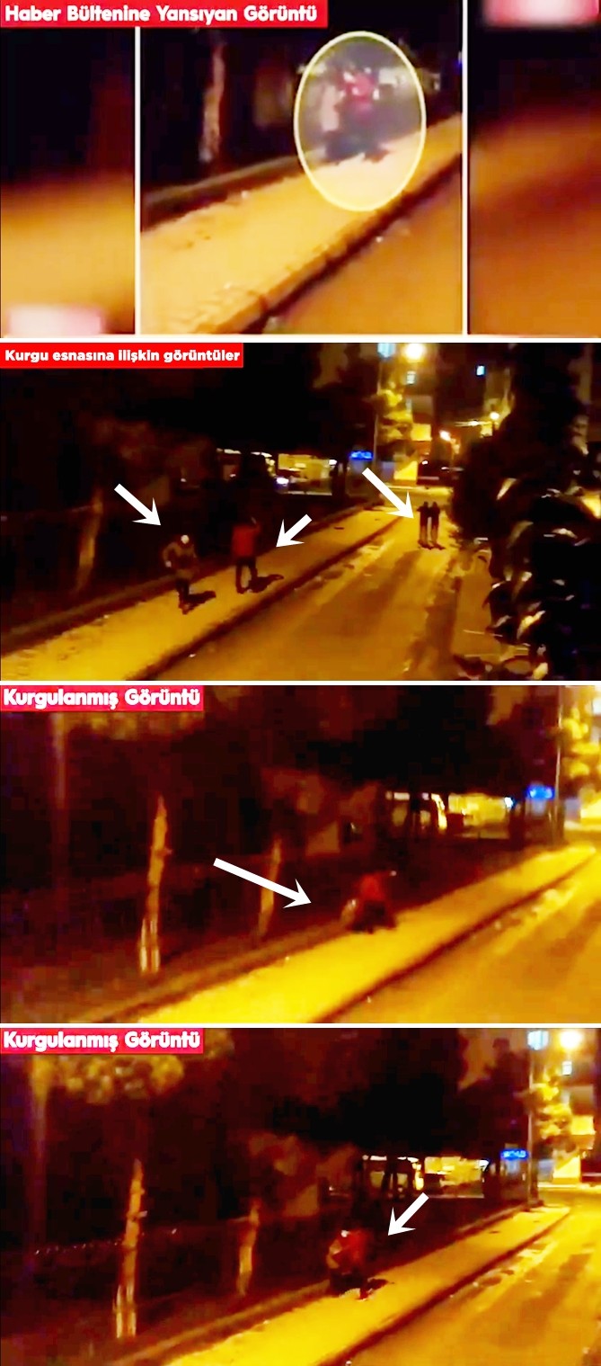Haberde yer alan görüntülerin hazırlanış aşamasında yaşananları içeren video görüntülerinde, mizanseni yöneten kişinin, “Ümit, sen kamerayı başlattığında Selin bağırıyor olsun. Anladın mı? Selin bağırırken kamerayı başlat sen.” dediği görülüyor. Bu sözlerin üzerine kadın ‘oyuncu’ gülerek “Ya ama of ya, yapmıyorum” diyor. Kurguyu yöneten kişi sonrasında, sözde şiddet uygulayan kocaya talimat vererek “De ki ‘ben seni saat 3’ü 11 geçe arıyorum neden açmıyorsun’” ifadelerini kullanıyor. Ardından haberdeki sahne kahkahalar eşliğinde gerçekleşiyor, sözde koca, karısını önce darp ediyor sonrasında da bıçaklayıp kaçıyor...